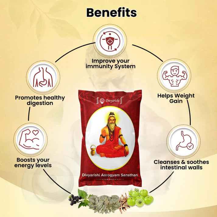 Natural ingredients such as amla, tejpatra and satawar to gently cleanse and detoxify the intestines. Taakat vati supports regular bowel movements, relieves bloating, and promotes a healthier digestive naturally.
